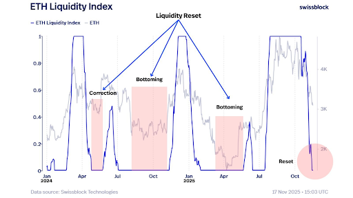 以太坊流动性指数临近重置 历史规律预示价格底部与市场趋稳信号