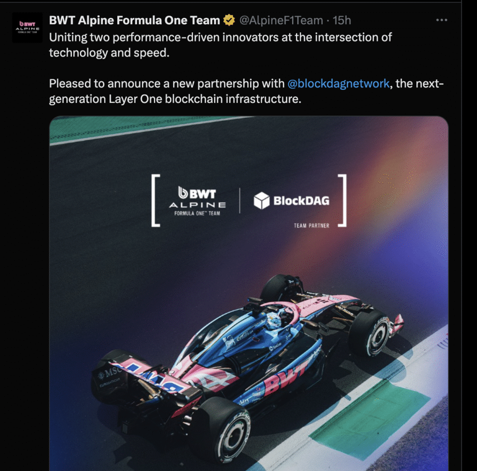 加密市场的走向从来不止于代码,更关乎信心建设。BlockDAG通过与BWT Alpine F1车队的合作,以及与HackerEarth联合举办的全球黑客马拉松,展现出精准的营销策略——同时撬动散户与机构关注。