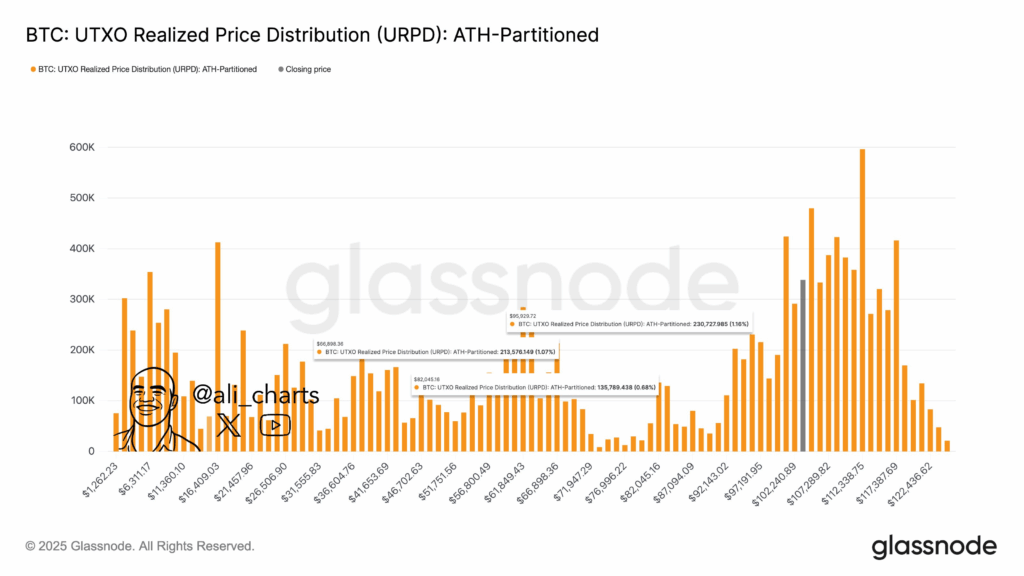 与此同时,Ali Martinez根据历史周期指出:自2015年以来比特币牛市持续1,064天的规律显示,本轮周期可能已在10月触及126,000美元峰值。他补充道:"跌破95,930美元后,下一支撑位于82,045美元。"