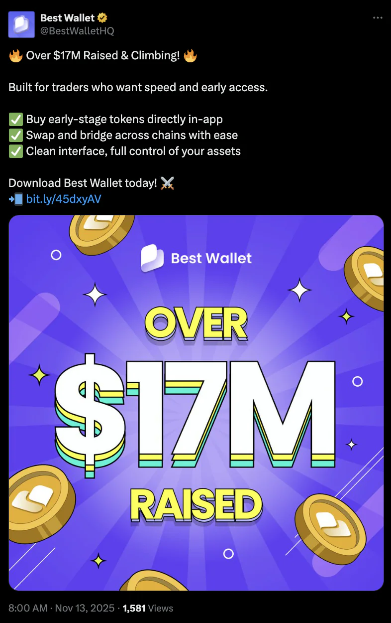 当前焦点正转向Best Wallet Token($BEST),该加密预售已募集超1710万美元。项目旨在构建安全简易的Web3导航中枢。在Solana ETF即将问世之际,Best Wallet成为青睐自我托管而非华尔街托管的用户首选平台。