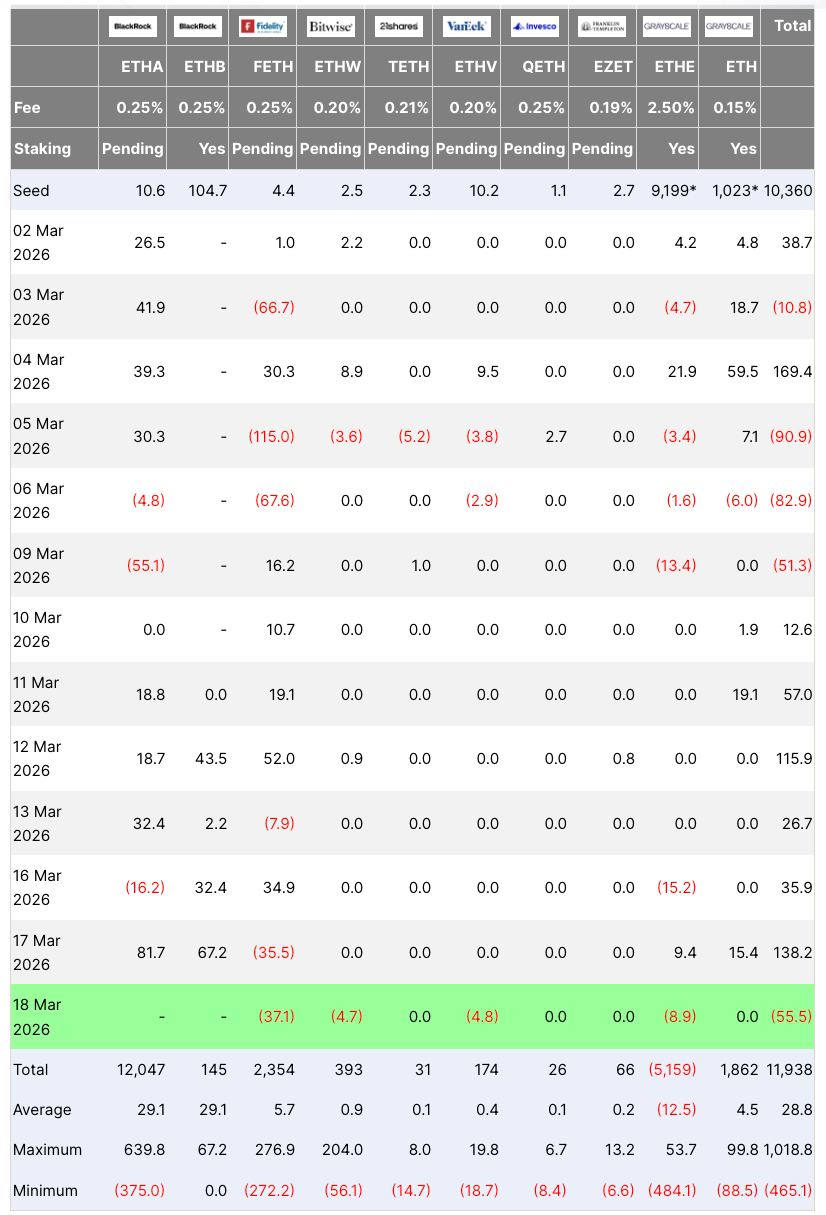 以太坊下跌之际,美国现货以太坊交易所交易基金出现新一轮抛售。数据显示,相关基金周三录得超5550万美元净流出,连续六日的资金流入趋势由此中断。