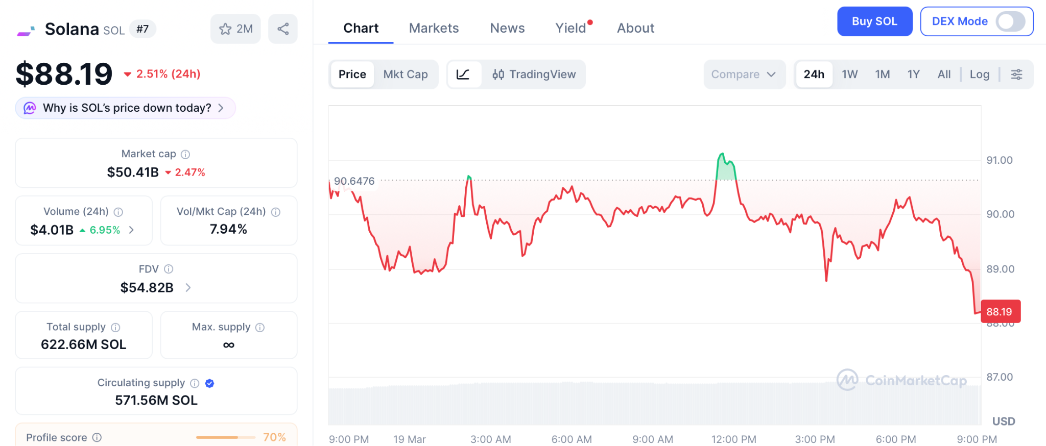 据CoinMarketCap数据,SOL交易价为88.19美元,现货ETF流入资金接近10亿美元,其中Bitwise贡献7.85亿美元。