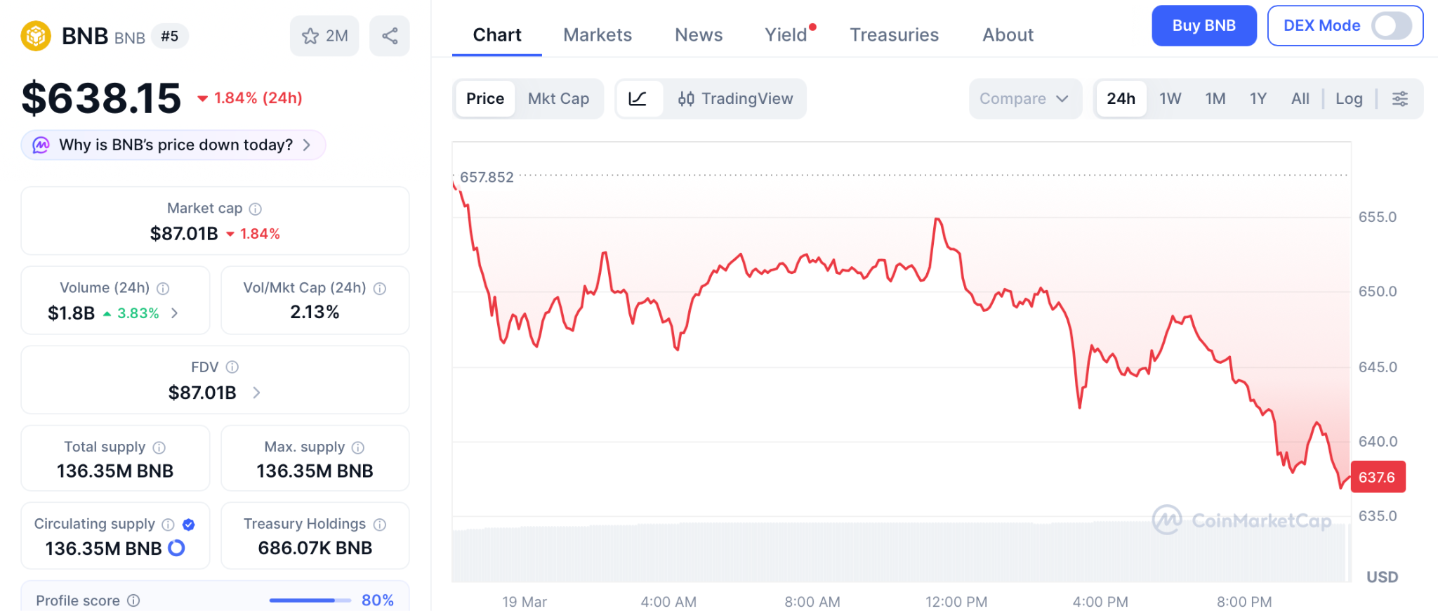 据CoinMarketCap数据,BNB现报638美元,下一目标为700美元。