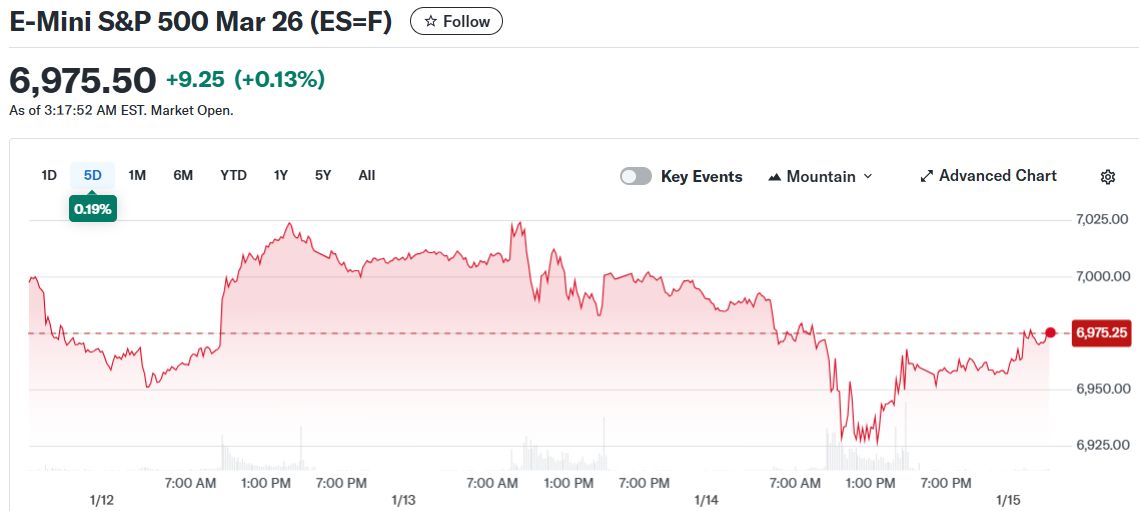 在主要股指录得2026年首次连续下跌后,美国股指期货周四在接近持平的水平交投。道琼斯工业平均指数和标准普尔500指数的期货合约在持平水平附近波动。