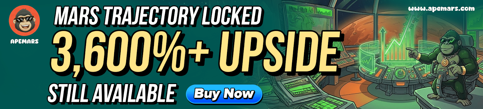 APEMARS通过“红色香蕉行动”启动其使命,这是一场灵感源自地球到火星2.25亿公里旅程、共分23个阶段的加密货币预售。每个阶段都代表了“猿猴指挥官”史诗航行的一部分,在社区的推动下,将预售转变为一场快速推进的剧情体验。第13阶段价格为0.00014493美元,为早期参与者提供了一个在代币以0.0055美元上市前锁定份额的独特机会,潜在投资回报率高达3694%以上。预售按周分阶段进行,随着每个阶段的推进,会有新的更新、任务日志和社区互动内容解锁,营造出持续的热度和前所未有的加密领域沉浸式体验。