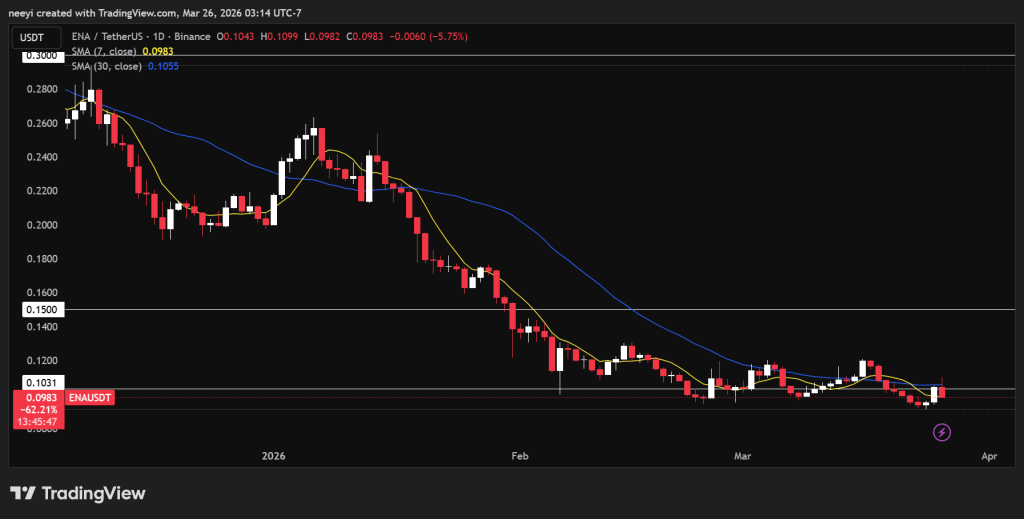 尽管近期多种竞争币表现疲软,但Ethena守住了接近0.10美元的水平,这使其重新开始受到市场关注。过去一周,ENA价格走势趋于平稳,这种状态通常预示着市场正在酝酿下一次方向选择。交易者正关注此价格区间会否在未来数月引发向上突破,抑或导致新一轮下跌。