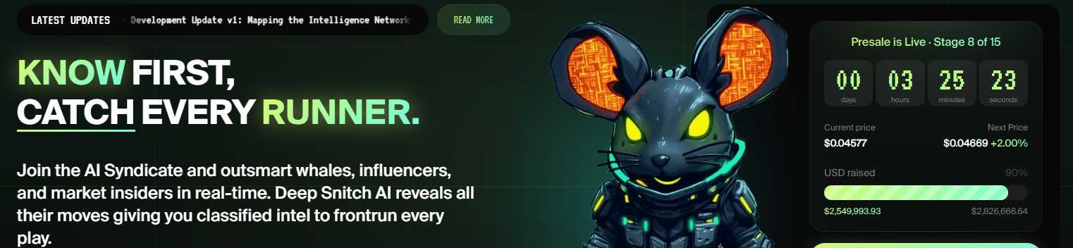 DeepSnitch AI筹集了约240万美元。它拥有实时AI工具。其预售将于2026年3月31日结束,之后计划在Uniswap上市。