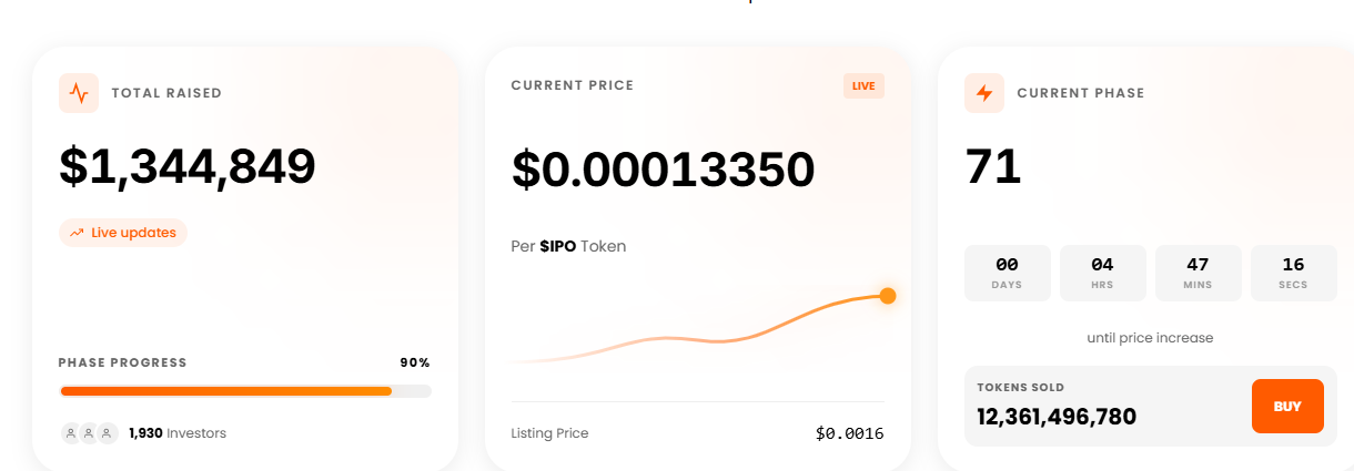 IPO Genie筹集了约150万美元。它已向1900多个钱包售出超过120亿枚代币。目前尚未确定交易所上市日期。