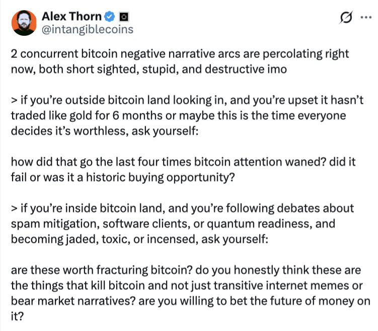 他表示:“收益率曲线的长端正在对此做出反应;10年期国债收益率创下年内新高,突破4.4%。”更高的利率通常对比特币等风险资产构成看跌信号,因为债券和定期存款等更安全的工具对投资者更具吸引力。美联储在3月将利率维持在3.50%-3.75%区间。