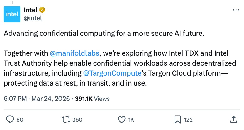 在英特尔透露正与Manifold及Targon合作,探索如何在去中心化基础设施上实现机密工作负载后,Bittensor子网4 (Targon) 获得了更多关注。