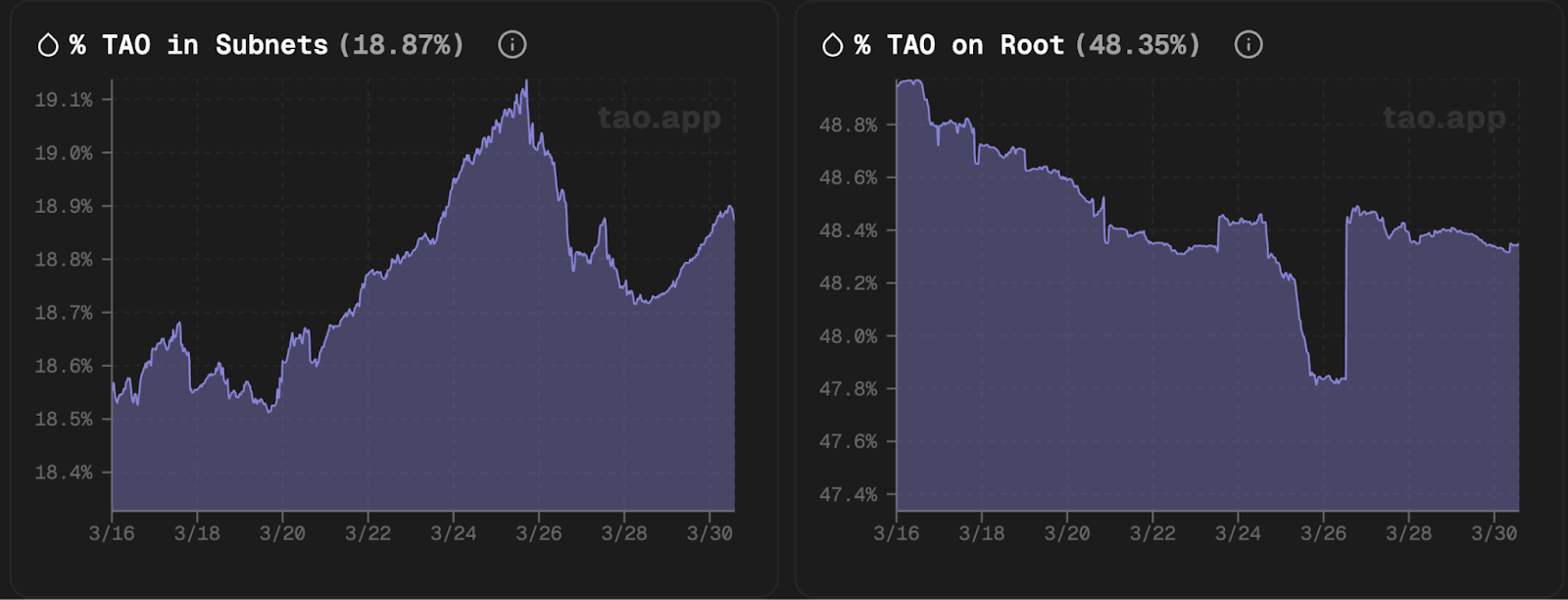 子网也开始吸引更多TAO质押,这表明TAO持有者正开始转向风险偏好立场。