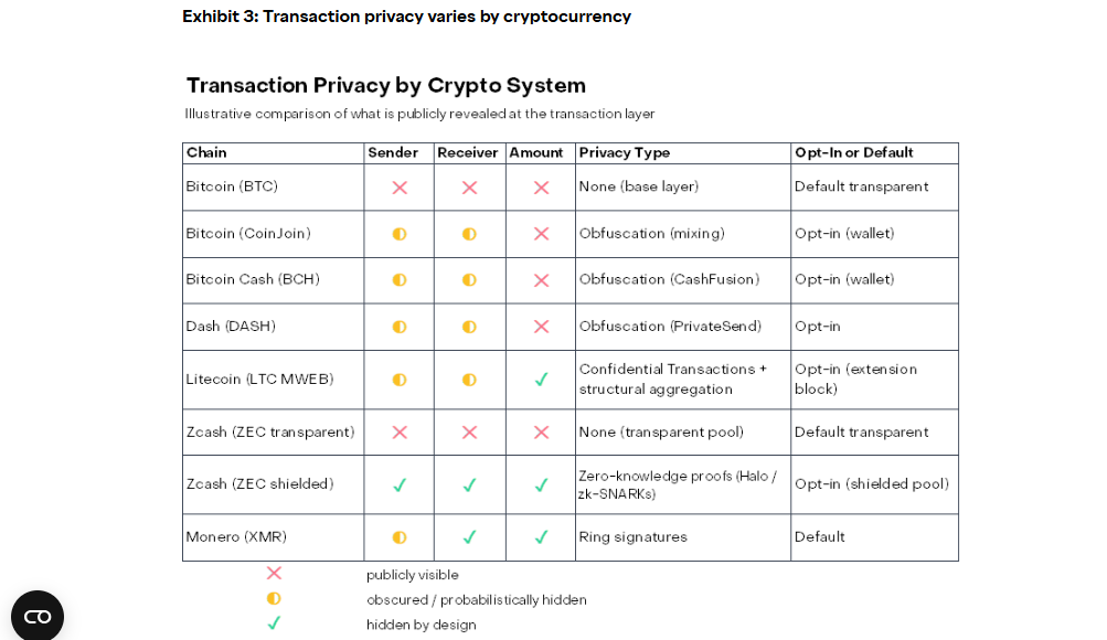 诚然,这正是ZEC始终占据优势的领域。正如本周灰度报告所指出的,完整隐私方案意味着发送方、接收方及交易金额均可依用户选择完全隐藏,实现全权掌控而非折中方案。
