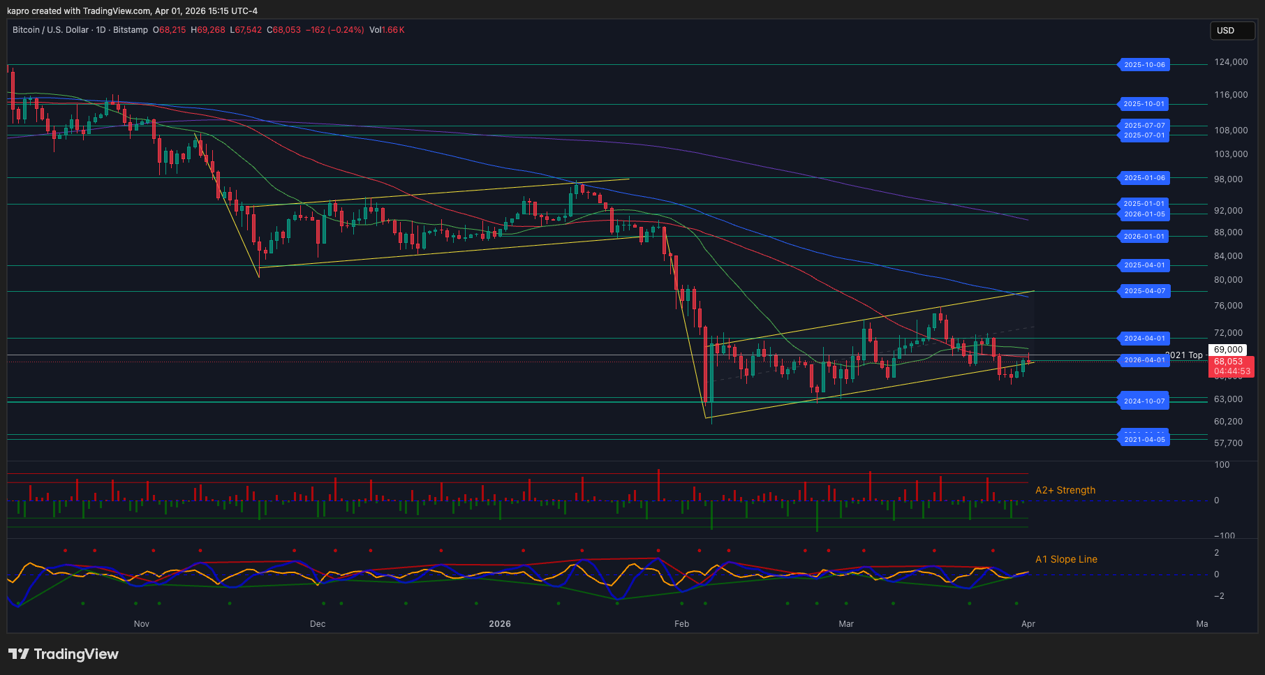正如此前报道,比特币价格走势与2026年初出现的看跌旗形支撑坍塌高度相似。交易资讯机构Material Indicators联合创始人Keith Alan评论称,BTC/USD交易对仍缺乏"方向性动能"。
