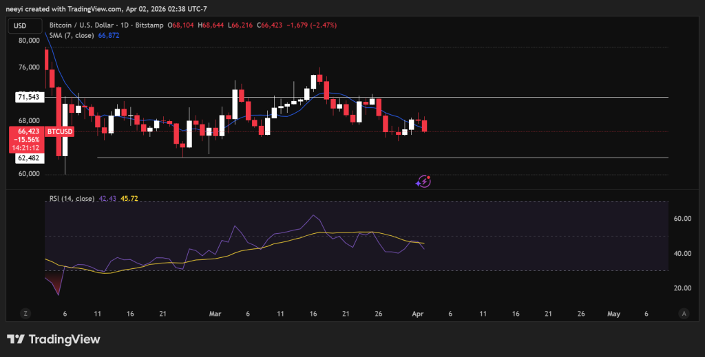 比特币目前运行在明确的技术区间内:75,000至80,000美元构成阻力带,此前反弹多在此受阻;66,000至72,000美元的中枢区域持续成为多空争夺焦点。当前最重要的支撑位于60,000至65,000美元区间,该区域已多次经受考验且与近期低点重合。