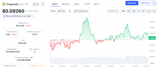 据CoinMarketCap数据,DOGE现报0.092美元,较2021年5月0.74美元的历史高点下跌87%。