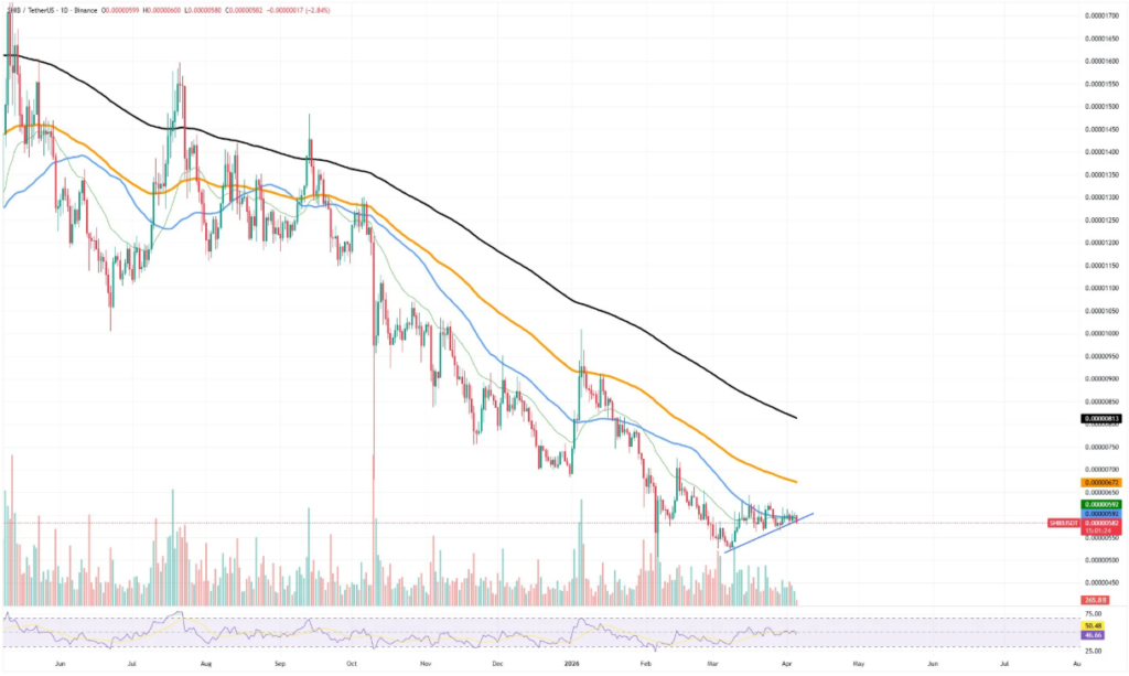 Shiba Inu 已跌破关键支撑区域,确认了看跌势头,因为买家未能守住上升趋势线并维持短期稳定。