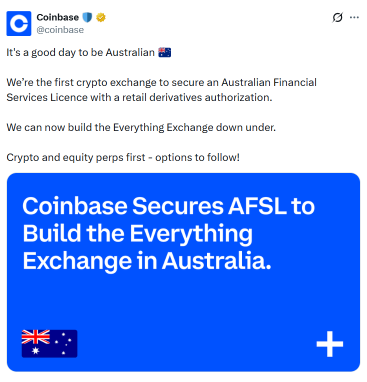 全球加密货币交易所Coinbase表示,在获得澳大利亚金融服务牌照后,计划将该国业务拓展至期货、期权、股票交易、支付及其他传统金融产品领域,致力于打造"全能交易平台"。
