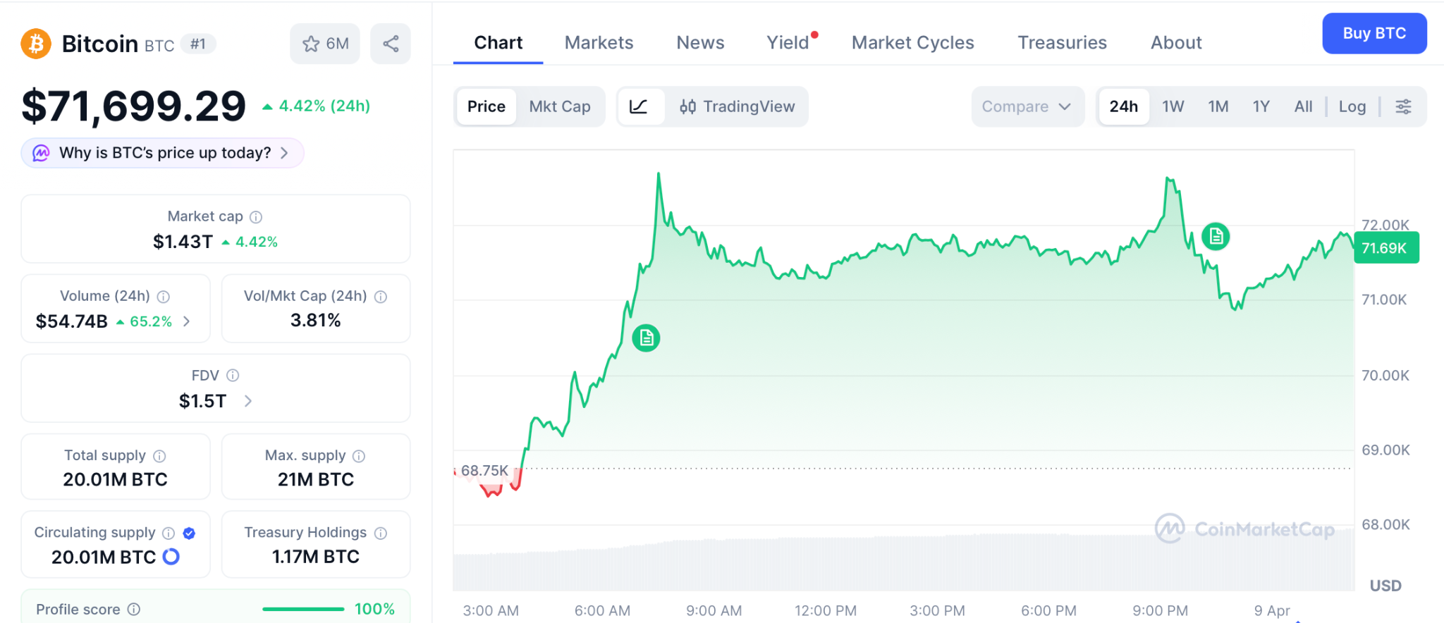 根据CoinMarketCap数据,截至4月8日,比特币交易价格为71,699美元。油价从115美元暴跌至95美元,消除了最大的阻力。周线图的相对强弱指数与2015年和2018年市场主要上涨行情前的超卖信号如出一辙。