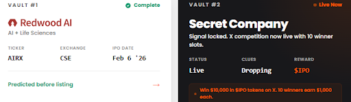 IPO精灵定位于由人工智能辅助交易评估支持的代币化私募市场准入。该项目强调双重审计、Fireblocks托管基础设施以及公开引用的Redwood AI Corp电话会议作为执行力的证明。其10美元的入场点使该平台对小额零售参与者而言更易进入。公布的代币经济学和团队锁仓细节可能会吸引那些在预售结构中优先考虑透明度的投资者。