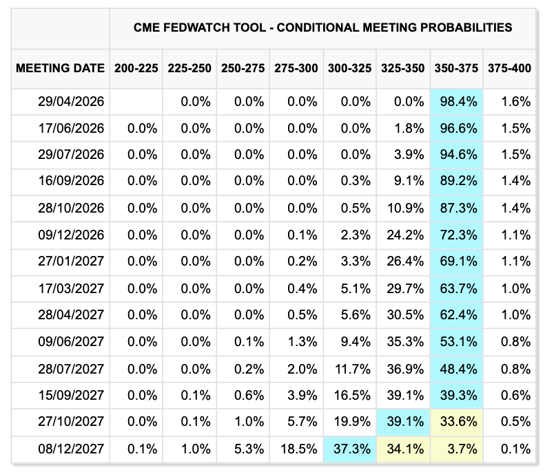 根据CME集团FedWatch工具数据,市场对美联储降息已不抱期待——这一结论在周四个人消费支出(PCE)指数公布后已基本确立。
