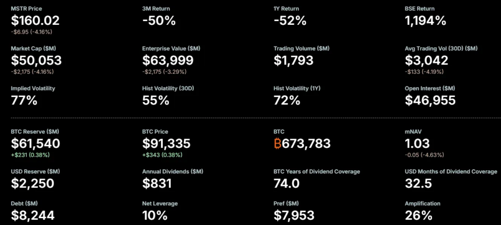在沉重抛压之下,Strategy的mNAV跌至1.03