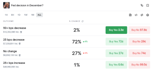 华尔街日报今日早间报道称,美联储内部对12月是否降息分歧加剧,这进一步增加了市场不确定性。