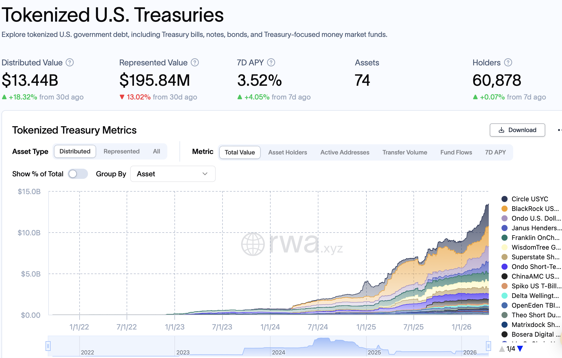 随着资产管理公司持续拓展区块链网络与交易模式,代币化货币市场基金规模正快速增长。RWA.xyz数据显示,截至发稿时,包含货币市场基金在内的代币化美国国债产品规模已从年初约89亿美元攀升至超130亿美元。