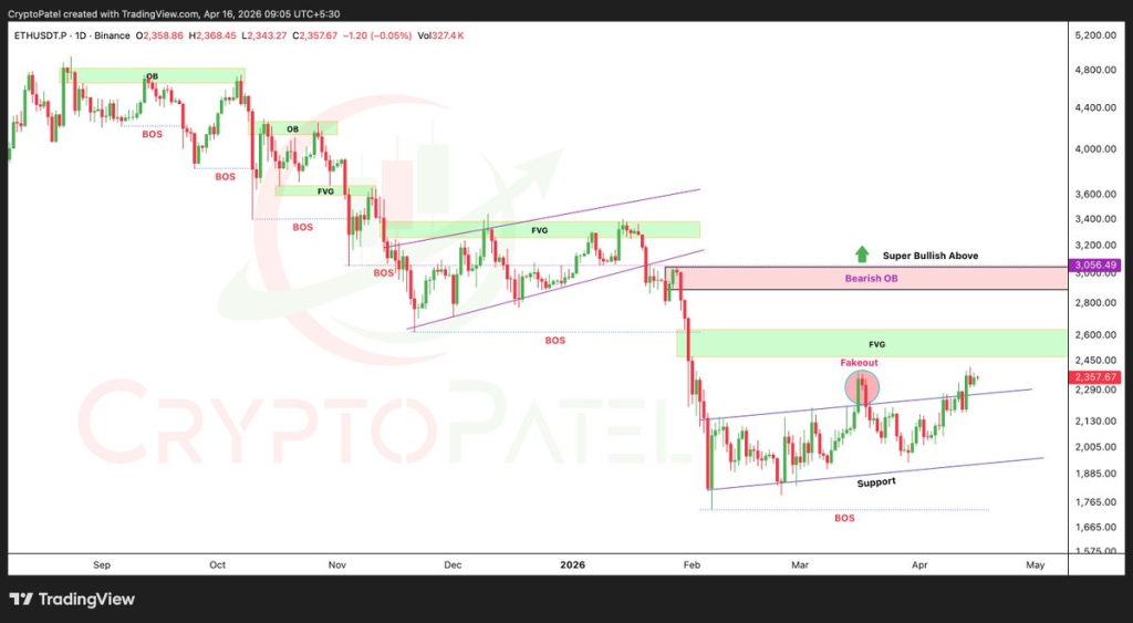 明确指出了这一关键水平:以太坊需日收盘价站上3,056美元,才能确认趋势完全反转。届时,图表将不再呈现为受损结构内的反弹,而将成为真正的看涨突破形态。