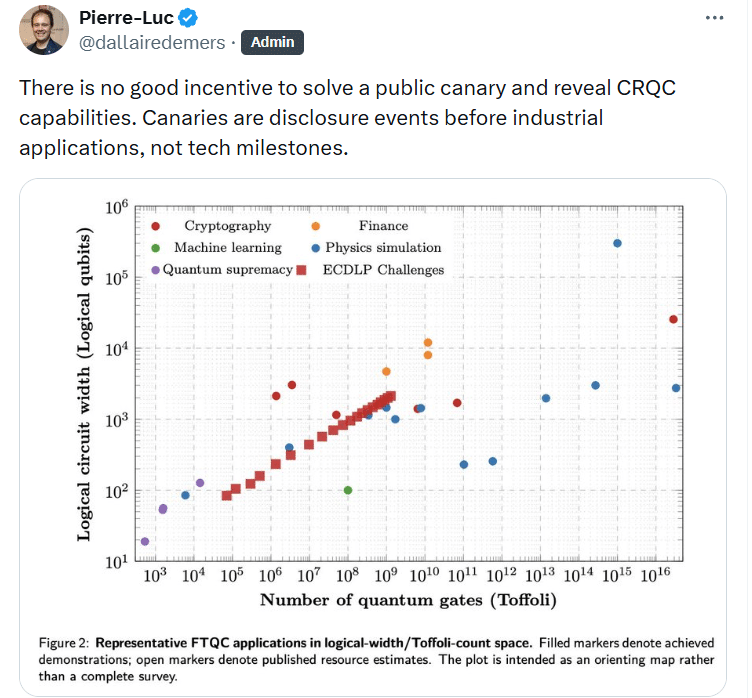 该提案在开发者社区中引发了不同的反应。Pierre-Luc Dallaire-Demers表示:“没有好的动机去解决一个公共的金丝雀并暴露CRQC能力。”他质疑先进的行动者是否会自愿暴露自己的能力。BitMEX Research承认该方法“增加了复杂性和风险”,但认为减少强制冻结带来的破坏可能使得这种权衡是合理的。
