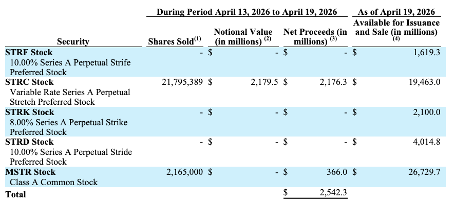 与近期的几次收购类似,策略公司最新购买的大部分资金来自其永久优先证券——拉伸(STRC)。根据文件,STRC筹集了21.8亿美元,约占总收益的85.7%,而A类普通股(MSTR)的销售贡献了3.66亿美元。