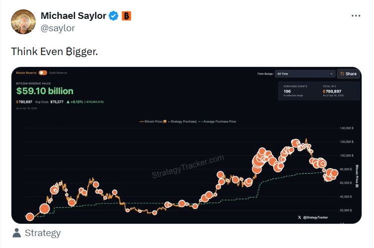 迈克尔·塞勒在 X 上发布的“Think Even ₿igger”帖子,为这场讨论增添了更多背景。他在帖子中分享了微策略比特币投资组合的截图。交易员们通常将塞勒此类含义隐晦的帖子视为信号,因为历史上类似帖子发布后不久,微策略就会向美国证券交易委员会提交文件,披露新的比特币购买计划。