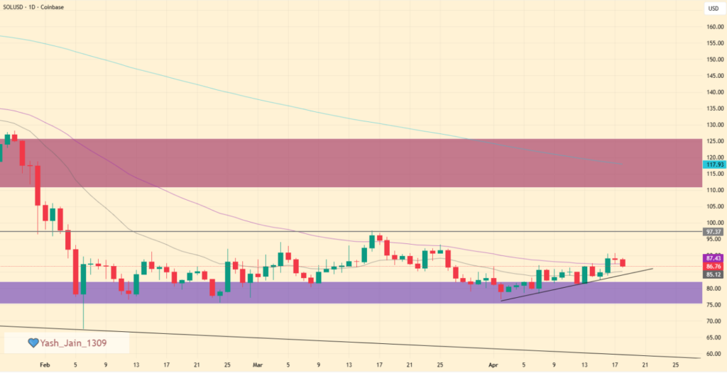 Solana目前交易于短期上升趋势线附近,该线构成即时支撑。此水平与85美元区域共同构成维持价格稳定的关键防线。然而若该区域失守,可能打开75至80美元的下一个支撑区间。该区域同时与主要流动性集群重合,使其成为进一步下跌时的潜在目标。