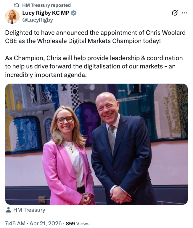 财政部同时任命前英国金融行为监管局资深人士克里斯·伍拉德担任批发金融市场数字战略的"数字市场倡导者",其将负责推动代币化数字资产的行业应用。伍拉德指出数字化在金融市场中的作用日益凸显,并强调公私部门的协作与对话将有力支撑英国在数字市场领域的全球领导地位。