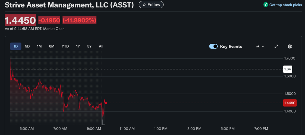 尽管持续推进加密战略,Strive股价在经历过去三个交易日超110%的暴涨后,盘前下跌13.5%。10月27日该股曾因巨量成交单日飙升49%,登上热门股榜单。