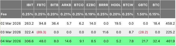 根据Farside数据,现货比特币ETF当日实现净流入4.62亿美元,连续第三日呈现资金净流入,本周累计流入达11亿美元。此前该类ETF曾经历连续五周资金流出,总额达38亿美元,而此次新增资金使年初至今净流入回升至约7亿美元。