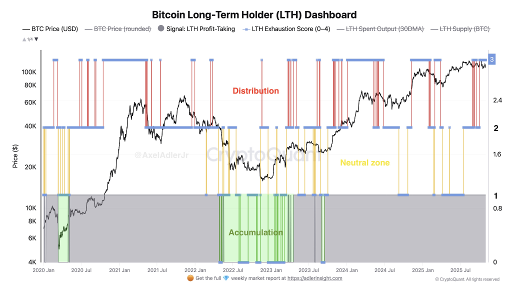 部分比特币长期持有者已开始趁上涨行情套现。分析师Adler指出:"除非该群体的抛压进入'2-1区间',否则市场上涨空间可能受限。"这种获利了结行为在牛市周期中并不罕见,长期持有者筹码的消化速度将决定比特币下一步走势。