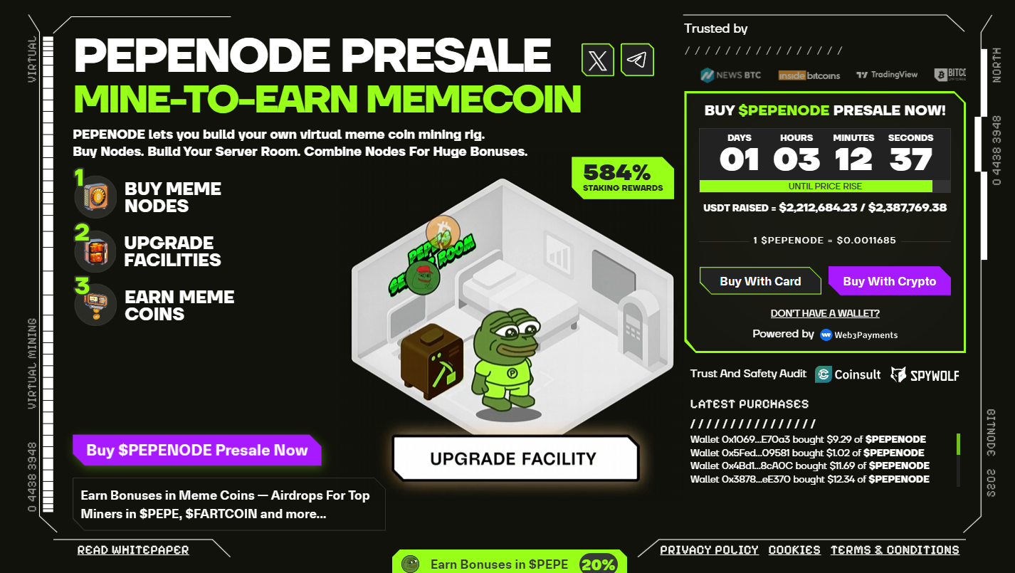 该项目既融合了Pepe文化,也设置了清晰机制:更多节点和更优虚拟装备可提升玩家产出,奖励以PEPENODE及精选外部Meme币形式发放,创造额外收益空间。