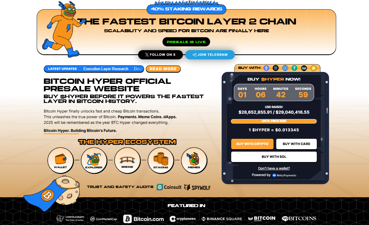 预售已筹集超2860万美元,使Bitcoin Hyper跻身2025年最大规模代币发行之列,显示出市场对比特币中心化扩展方案的强烈信心。质押功能已开放并提供40%年化收益,大量代币已被锁定,奖励选择长期持有的早期支持者。