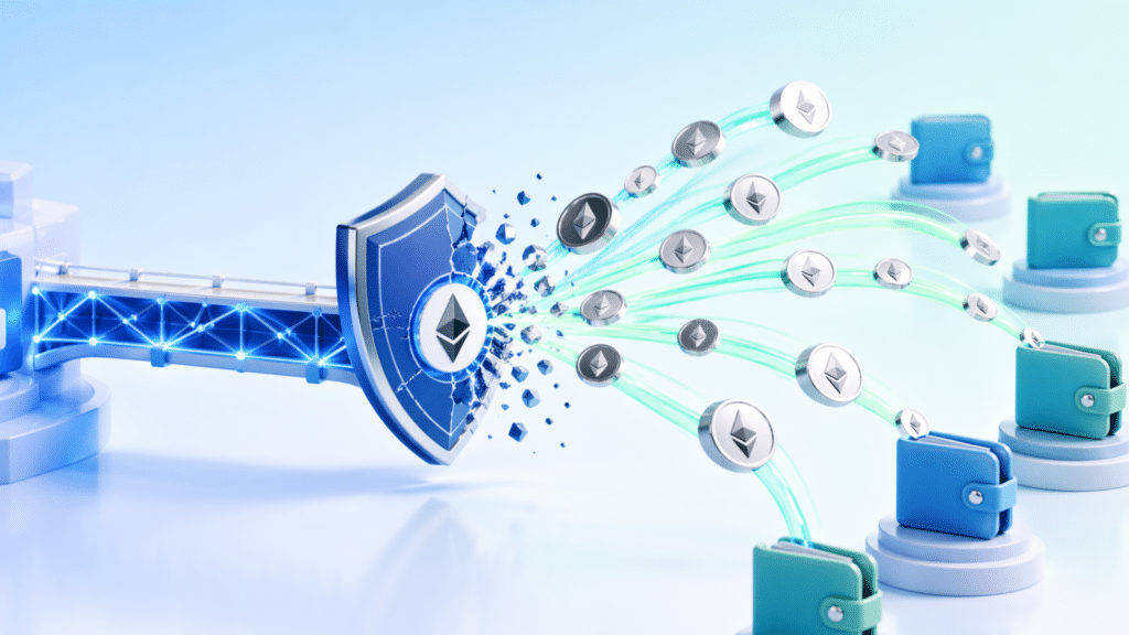 漏洞发生后,攻击者启动了有组织的转移。其中包括将25,000枚ETH和50,700枚ETH转入独立钱包,并伴随小额交易。这种模式表明其意图通过分散资金来降低可追踪性,并为跨链兑换做准备。
