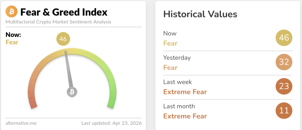 三个月情绪高点的出现并非孤立现象——摩根大通在标准普尔500指数回调5.2%后发出战术性买入信号,该信号强化了当前在加密与股票市场均可见的广泛风险偏好轮动。加密情绪复苏与机构股票仓位调整的同步性表明,宏观背景是主要驱动力,而非加密市场的特有催化剂——这一因素的双刃剑效应取决于风险偏好能否持续。