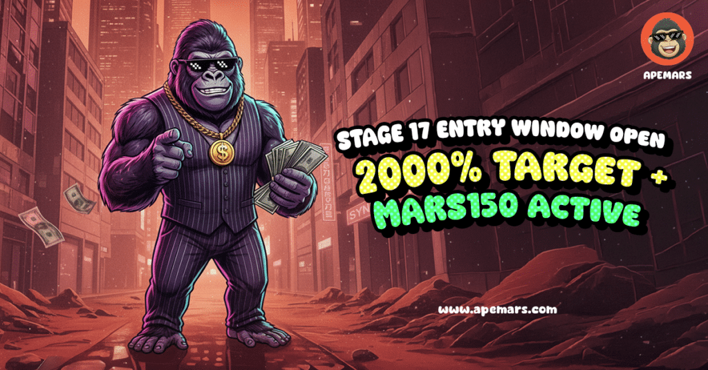 APEMARS旨在提供一个更有组织、更易进入的模因币领域入场方式,这对新手尤其具有吸引力。它不完全依赖炒作,而是采用分阶段的预售结构,让参与者可以逐步入场。该项目目前处于第17阶段(最终锁定期),增长正在加速,但仍处于上市前阶段。代币价格为0.000254380美元,预计上市价格为0.0055美元,此阶段的潜在回报率约为2,062%,这巩固了其作为寻找早期机会的新手最佳选择的地位。