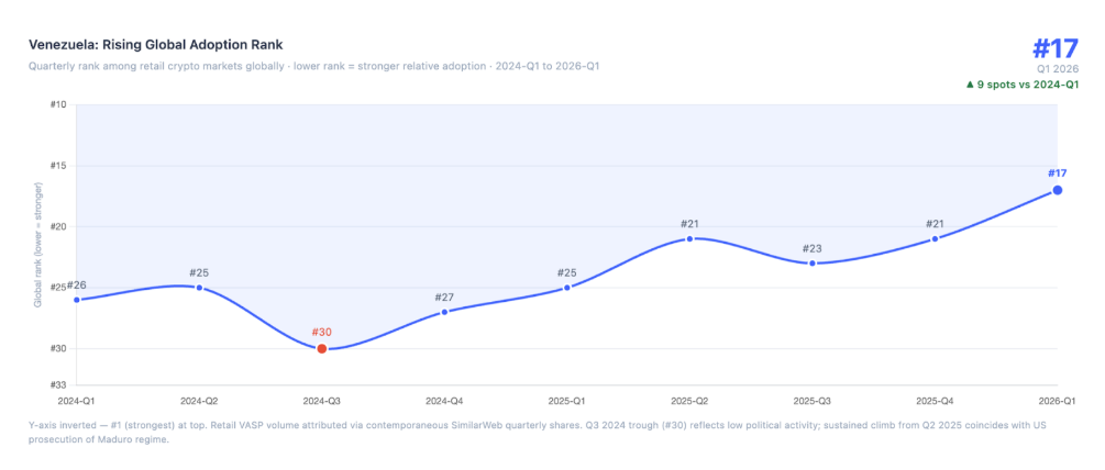 全球加密货币采用率在第一季度出现下滑,零售活动在日益严峻的宏观经济和地缘政治压力下走弱,凸显出该行业对整体市场环境的持续敏感性。