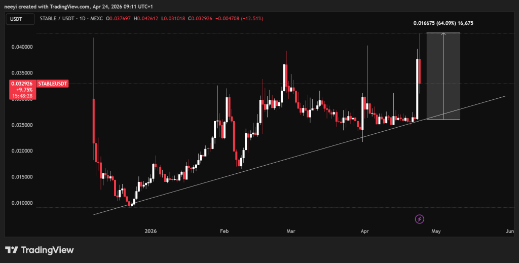 这种转换并不依赖于单一项目,它倾向于提振同一类别中的多种资产。STABLE价格只是该类别中表现最强的标的之一。