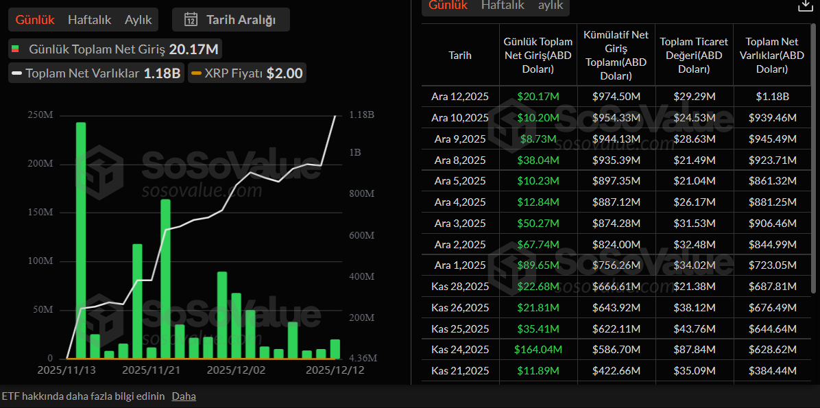 尽管市场情绪持续19天波动,XRP代币ETF仍呈现强劲资金流入。这一趋势表明机构投资者对瑞波抱有浓厚兴趣。据SoSoValue数据显示,周五单日净流入达2010万美元,总流入规模逼近10亿美元门槛,ETF产品管理资产规模已升至11.8亿美元。