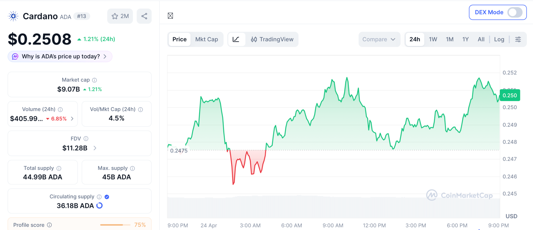 卡尔达诺价格动态:ADA坚守0.25美元,Leios升级进入倒计时