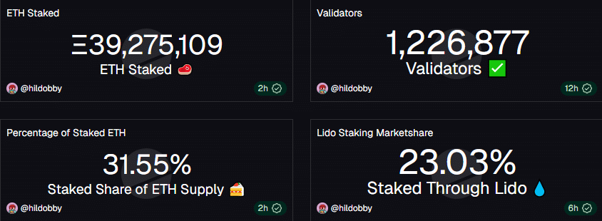 尽管如此,更广阔的生态系统提供了一个稳定的平衡点。仍有约3920万枚ETH处于质押状态,占总供应量的31.5%。其中约23%由Lido管理,反映出对流动性质押的强烈信心。