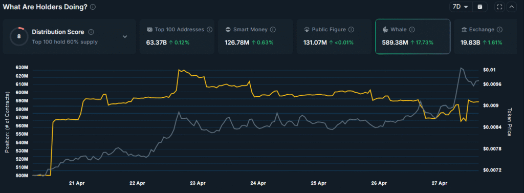 大户活动仍然是最强的看涨信号之一。在过去七天里,大额持有者的PENGU持仓余额增加了17.71%。