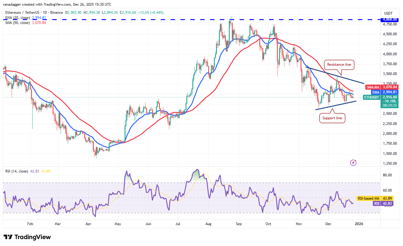 以太坊继续在对称三角形形态内交易,显示供需处于平衡状态。