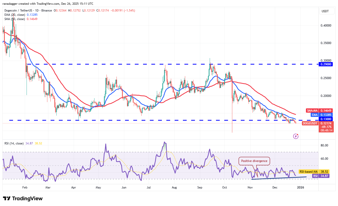 狗狗币仍处于0.13美元下方,表明空头持续施压。