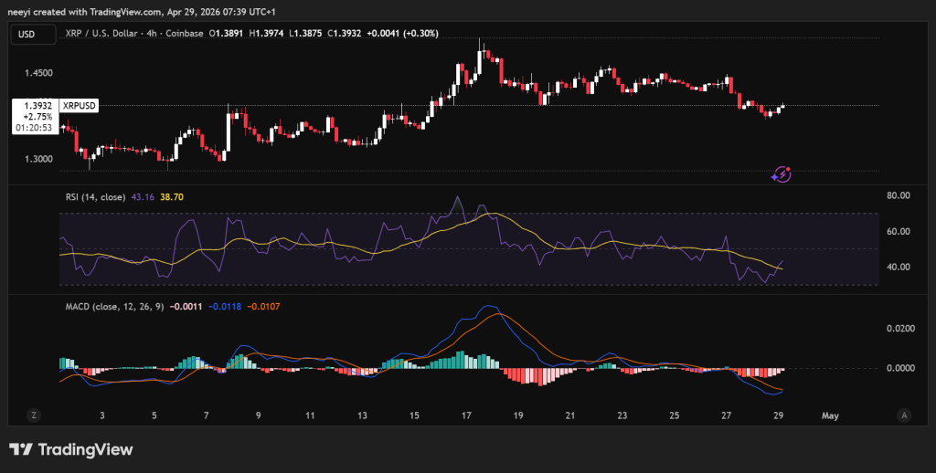 动能指标略微偏向正面。4小时图上,RSI位于53附近,显示温和强势,但未确认强劲推力。MACD也支持这一观点,其MACD线已上穿信号线,表明动能正在改善。
